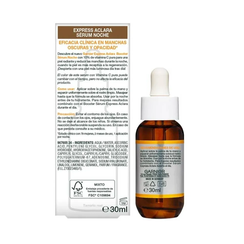 Sérum facial de noche Garnier Skin Active express aclara vitamina c 30 ml